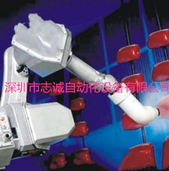 噴涂機器人又叫噴漆機器人(spray painting robot), 是可進行自動噴漆或噴涂其他涂料的工業機器人,1969年由挪威Trallfa公司(后并入ABB集團)發明。噴漆機器人主要由機器人本體、計算機和相應的控制系統組成,液壓驅動的噴漆機器人還包括液壓油源,如油泵、油箱和電機等。多采用5或6自由度關節式結構,手臂有較大的運動空間,并可做復雜的軌跡運動,其腕部一般有2~3個自由度,可靈活運動。較先進的噴漆機器人腕部采用柔性手腕,既可向各個方向彎曲,又可轉動,其動作類似人的手腕,能方便地通過較小的孔伸入工件內部,噴涂其內表面。噴漆機器人一般采用液壓驅動,具有動作速度快、防爆性能好等特點,可通過手把手示教或點位示數來實現示教。噴漆機器人廣泛用于汽車、儀表、電器、搪瓷等工藝生產部門。