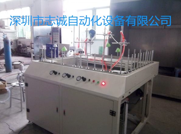1、連續(xù)式生產(chǎn),產(chǎn)量高。工件自轉(zhuǎn),多把噴槍可以手動調(diào)節(jié)上下、左右不同角度;